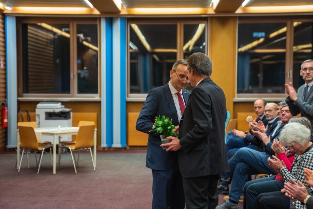 Auch wenn die Voraussetzungen nicht immer einfach waren, wie auch Kollege Michael Graf in seinem Statement festhielt, habe man – gemäß dem Kleinen Prinzen und dem Fuchs – zu vertrauensvoller Zusammenarbeit gefunden. Kollege Graf erinnerte an die 16-jährige Zusammenarbeit, an die 100 SGA-Sitzungen, 32 Kuratoriumssitzungen sowie 64 Elternvereinssitzungen – an die 700 Stunden sollen es so insgesamt gewesen sein –, die von gegenseitigem Respekt getragen waren. Norbert Pay bedankte sich für die konstruktive Zusammenarbeit und die persönliche Verbundenheit.