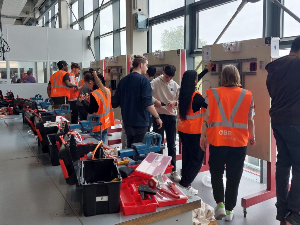 Der 30. März 2023 war für neun Schüler:innen des 3. Jahrganges der Abteilung Elektrotechnik ein besonderer Tag: Sie kamen in die Lehrwerkstätte der ÖBB, um sich dort gemeinsam mit neun Lehrlingen der Energietechnik mit dem Thema „Energieeinsparen in Bildungseinrichtungen“ zu befassen. Koordiniert durch Mitarbeiter:innen der ÖBB und Fr. Prof. Matejka vom TGM sollten die Jugendlichen an folgender Aufgabenstellung arbeiten und Lösungsvorschläge dazu entwickeln: den Energieverbrauch der Lehrwerkstätte zu reduzieren und damit gleichzeitig die aufgrund der hohen Inflation steigenden Energiekosten zu senken. Außerdem sollte die Zusammenarbeit zwischen dem TGM und Lehrwerkstätte der ÖBB durch Teambuildings- und Projektmanagement-Workshops für die Jugendlichen unterstützt werden.