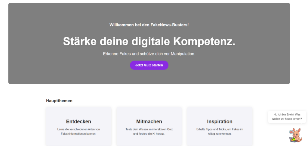 Doris Bäs-Fischlmair, Eman El-Khamesy, Okikiola Olaoye und Lana Schug aus dem Aufbaulehrgang entwickeln in ihrer Diplomarbeit eine inklusive interaktive Webseite, die spielerisch dazu motivieren soll, Fake News, Manipulation und digitale Legenden zu erkennen.
