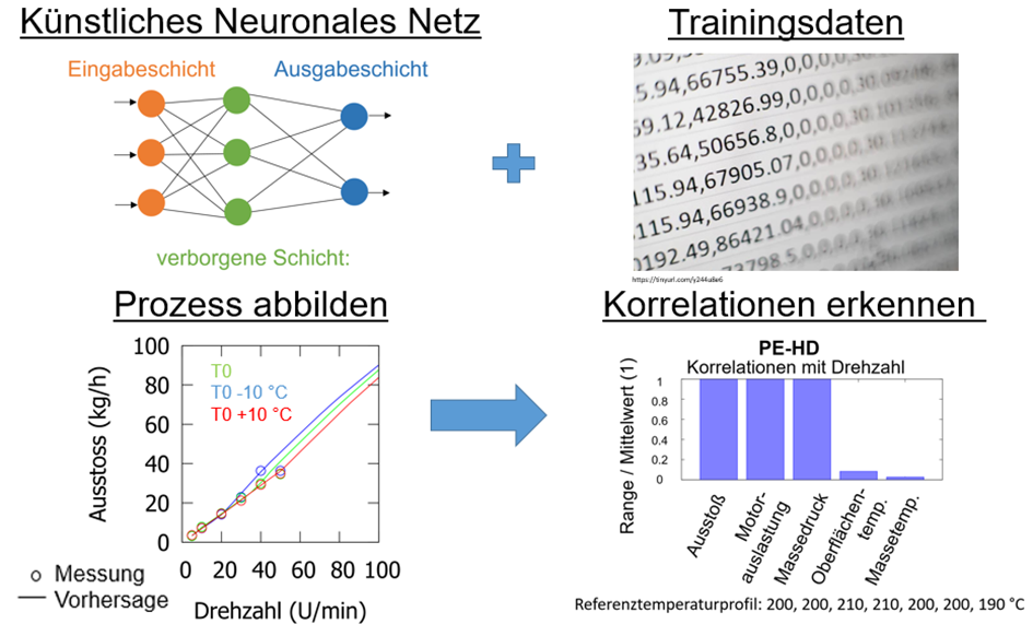Bis heute ist es üblich, dass die Qualität des Produktes erst nach der Produktion überprüft wird. Dabei kann es vorkommen, dass die Qualitätsanforderungen nicht erfüllt wurden, wodurch der hohe Zeit- und Kostenaufwand keine brauchbaren Produkte liefert. Das könnte durch die Überwachung von Prozess- und Materialparametern, welche die Qualität des Endproduktes maßgeblich beeinflussen, verhindert werden. Aufgrund der hohen Komplexität der Kunststoffverarbeitung, insbesondere des Materials, ist die Identifizierung der signifikanten Parameter mithilfe der herkömmlichen Korrelationsanalysen jedoch nur schwer möglich.